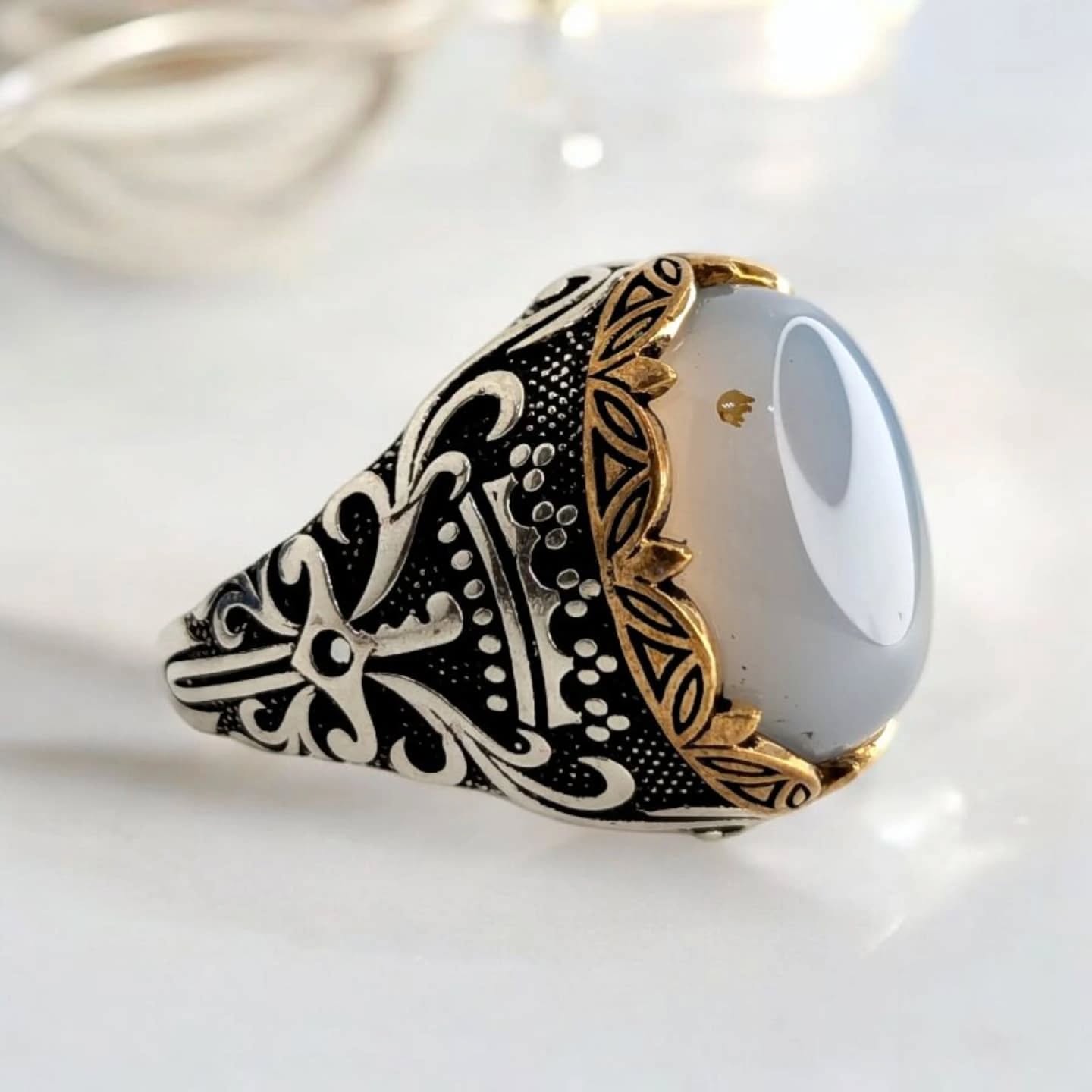 Natural Aqeeq Stone Ring